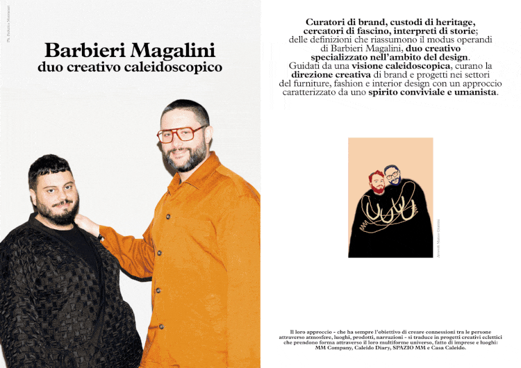 Curatori di brand, custodi di heritage, cercatori di fascino, interpreti di storie; delle definizioni che riassumono il modus operandi di Barbieri Magalini, duo creativo specializzato nell’ambito del design. Guidati da una visione caleidoscopica